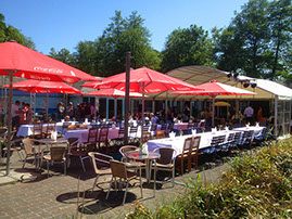 Bei schönem Wetter stellen wir Ihnen gern unseren Strand mit drei Beachvolleyballfeldern und einem Soccer-Platz zur Verfügung. Direkt neben dem Beachvolleyball gibt es noch eine Hütte mit 50 Sitzplätzen. Ein toller Platz für ein sommerliches Barbecue oder einen Kindergeburtstag. Die Außenbereiche sind für Veranstaltungen mit bis zu 500 Gästen geeignet.