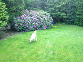 in unserem weitläufigen Biergarten bei leckeren Getränken und mit Blick ins Grüne.