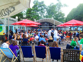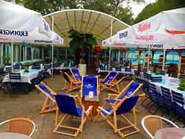 Zwar ist dort kein großes Wasserbecken mehr zu finden, doch dafür erstrahlt seit Anfang 2008 ein neugestalteter Biergarten mit Beachvolleyballplätzen, Beachfußballplatz, Liegewiese, Lounge und reichhaltigem Angebot an Speisen und Getränken, in neuem Glanz. Jeder ist herzlich eingeladen zum Relaxen, Sport treiben, Genießen oder zum ausgelassenen Feiern.