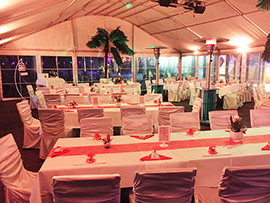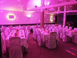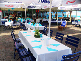 Sie können, müssen das Catering aber nicht über uns beziehen. Wenn Sie die Getränke über uns beziehen, fällt die Miete für die Anlagennutzung weg. Für die Bewirtung Ihrer Gäste machen wir Ihnen gern die passenden Vorschläge. Vom Grillbuffet über italienische und spanische Spezialitäten bis hin zum orientalischen Abend ist alles möglich. Technisches Equipment wie DJ-Pult, Musik- und Lichtanlage, sowie Beamer mit großer Leinwand sind vorhanden.