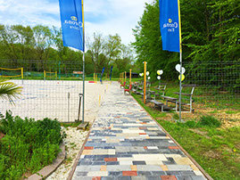 Ob Beach-Volleyball oder Beach-Soccer – auf unseren 4 Sandplätzen können Sie sich sportlich verausgaben oder auf den Liegewiesen relaxen.